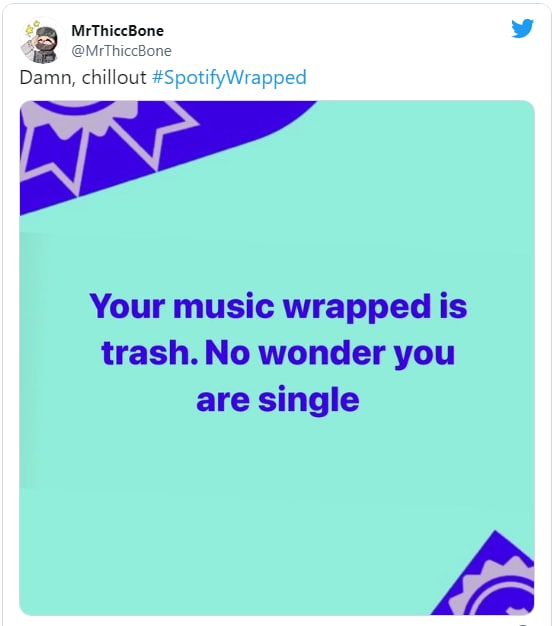 Помимо непосредственно самих сторис, от которых все начали уставать уже через сутки, Wrapped стал вдохновением для безграничного количества мемов, в этом году особенно запомнившись своими дизайном, который одни воспринял как шутку или криворукость дизайнеров, а другие в ответ деконструировали такой выбор цветов, типографики и лэйаута. Отдельный жанр мемов касался самих текстов, полных сленга и баззвордов, в которых, по мнению многих, Spotify перестарался в попытках "заговорить с пользователями на одном языке".