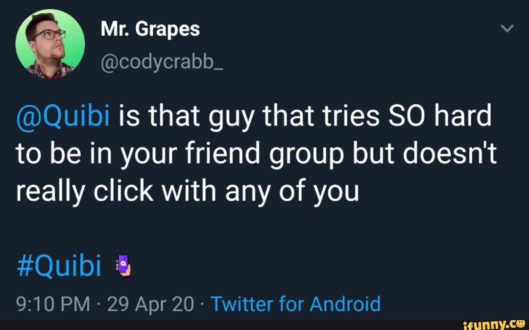 Quibi же как будто специально проходит мимо всех трендов и упускает любую возможность продвинуть себя. Все мемы и твиты о нем были… только о нем самом, а не о контенте.
