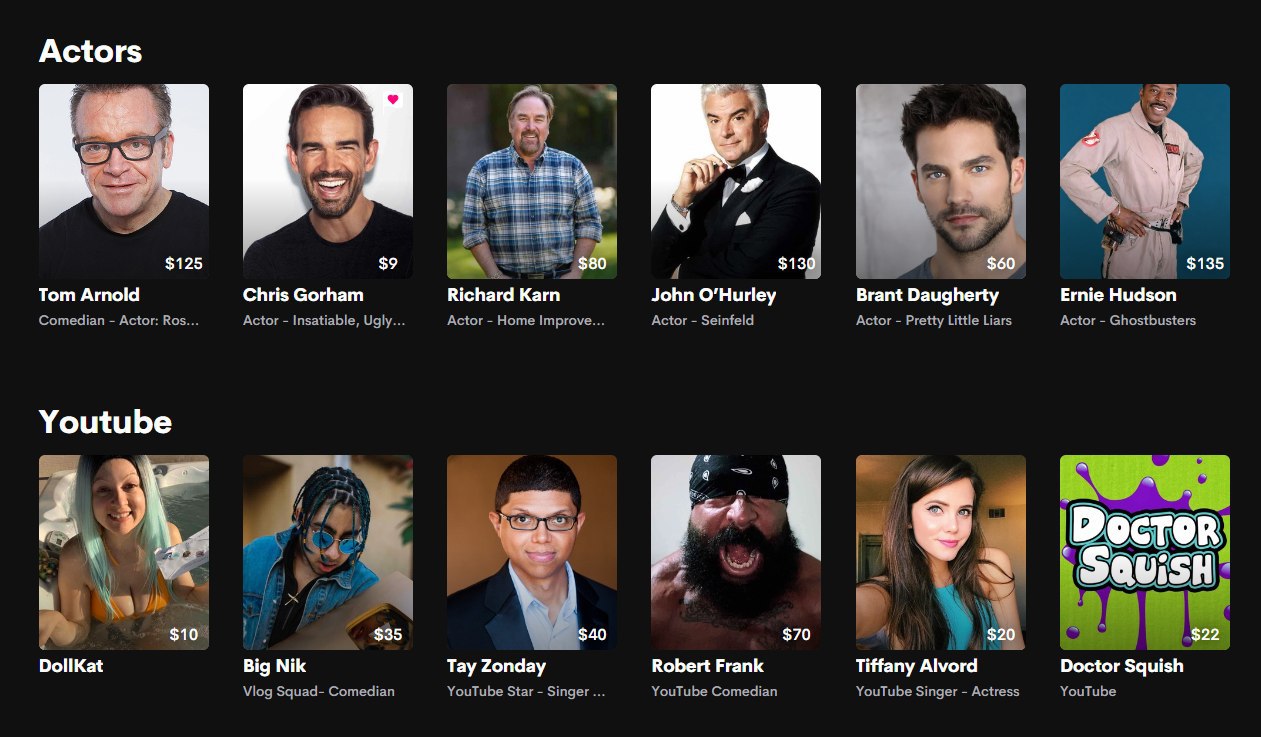 В топе по популярности есть и несколько инфлюенсеров, например любитель интернет-скандалов Perez Hilton и ютубер Chris Schewe. О том, как Cameo меняет рынок инфлюенс маркетинга я писал в этом посте.