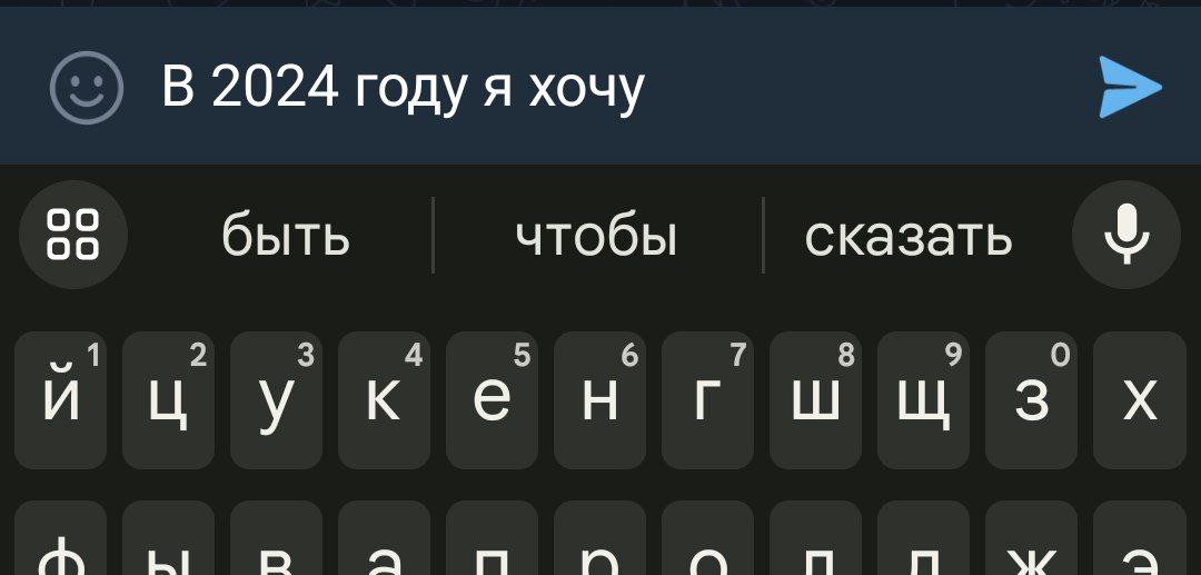 В комментах к этому посту пишите начало фразы «В 2024 году я хочу...», а продолжайте её с помощью Т9. Для удобства можно, например, каждый раз выбирать варианта посередине.