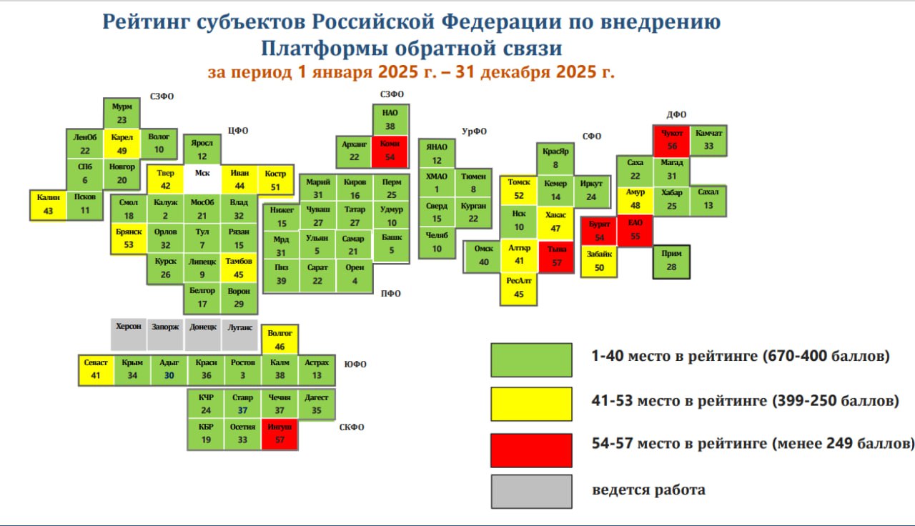 Чиновники, видимо, полагают, что чем выше в рейтинг – тем лучше. И пишут о регионах, улучшивших показатели за год (рейтинг – вверх) или, наоборот, ухудшивших (рейтинг – вниз). Чем больше жалоб, поданных через Платформу обратной связи, - тем выше рейтинг. Однако жалоба – есть жалоба. Пишут же их не от хорошей жизни.