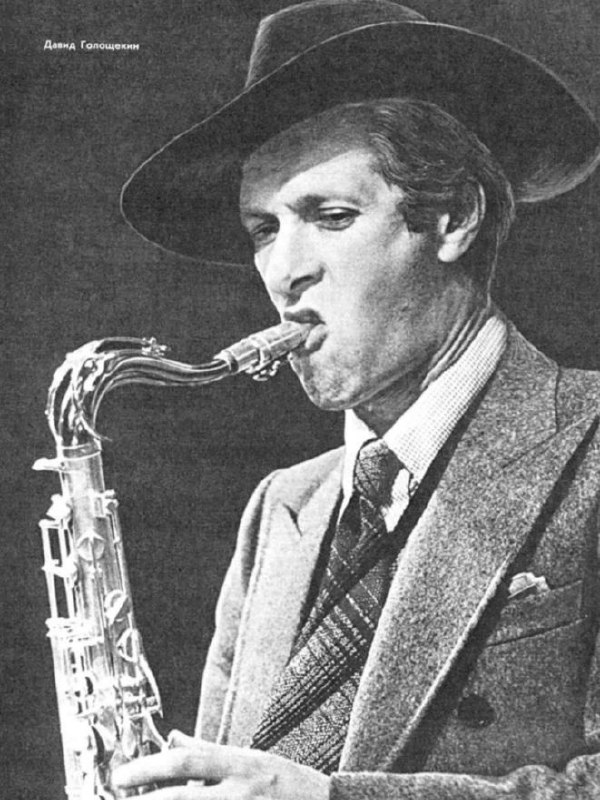 Фотография Давида Голощекина - пижонистого красавца с саксофоном, который даст фору даже Джерри Маллигану - из 600 - страничного (!) альманаха "Советский джаз" 1987 года.