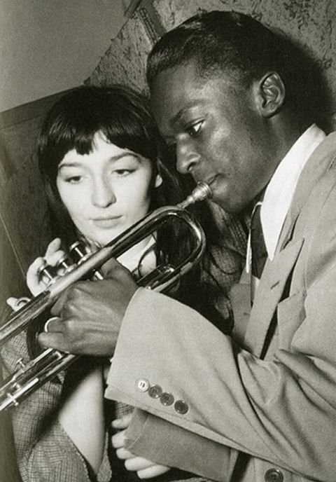 На фото 22-летний Майлз Дэвис показывает приемы игры на трубе 22-летней актрисе и певице Жюльетт Греко в гримерке парижского зала Плейель, 1949 год. Так начался их красивый и пронзительный роман. Удивительно же: они общались и понимали друг друга без слов (Греко еще не говорила по-английски, Дэвис не знал французский).