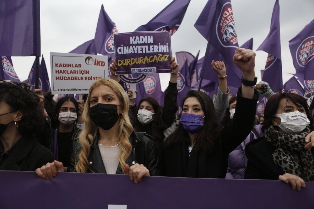 Сотни женщин вчера собрались на демонстрации по всей Турции, чтобы выразить протест против выхода из Стамбульской конвенции.