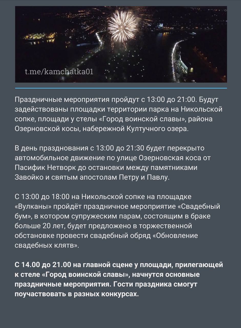 День города Петропавловск-Камчатский отметит 18 сентября.
