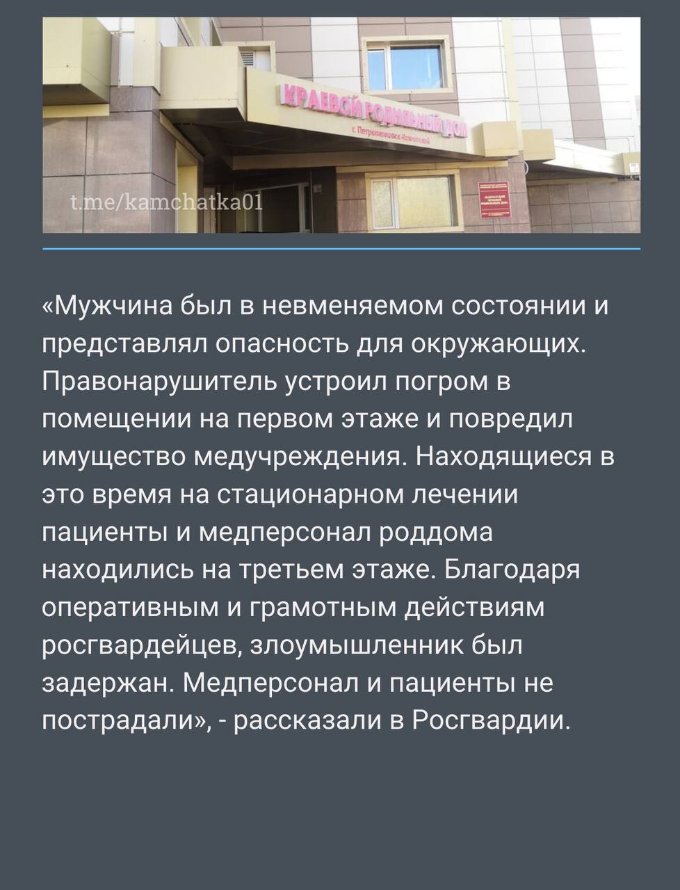На Камчатке мужчина, который находится в федеральном розыске, в невменяемом состоянии устроил погром в роддоме №1 в Петропавловске.