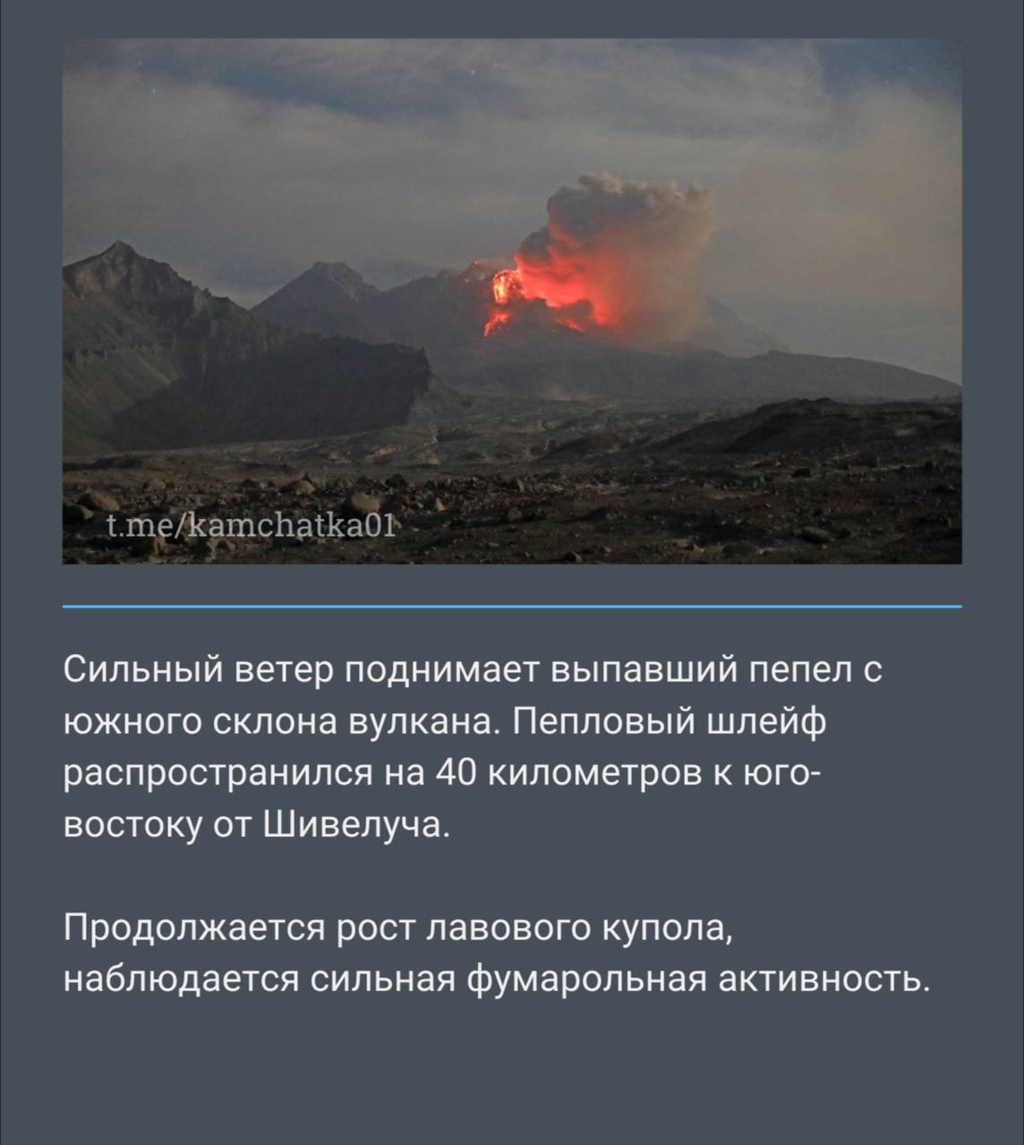 Вулкан выбросил пепел, что может повлиять на безопасность полётов над полуостровом. Шивелучу присвоен «оранжевый» (предупреждающий) код авиационной опасности.