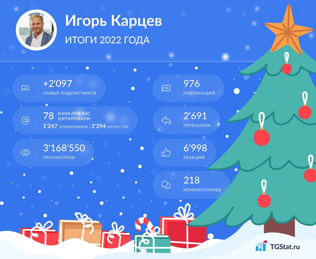 Друзья и коллеги! Я поздравляю всех Вас с наступающим Новым 2023 годом и Рождеством и желаю, чтобы новый год приносил радость в наши семьи и помогал нам делать жизнь в стране лучше. Я благодарен всем, кто читал меня в этом году.