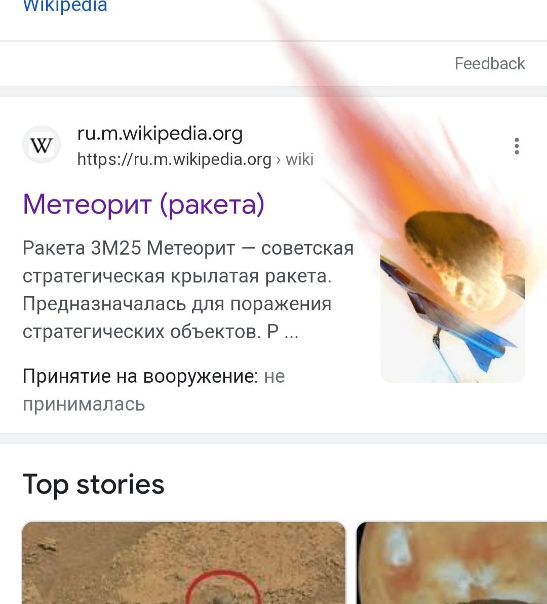 Если загуглить слово «метеорит», то можно увидеть то, что могло бы прилететь, но не прилетит.
