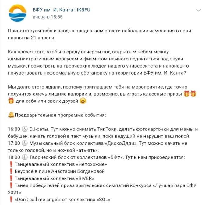 И пообещал, что в ближайшие 2 года в вузах страны появятся еще 45 тысяч бюджетных мест, причем менее 70% их них будет в регионах. Наверняка затронет и БФУ с остальными.