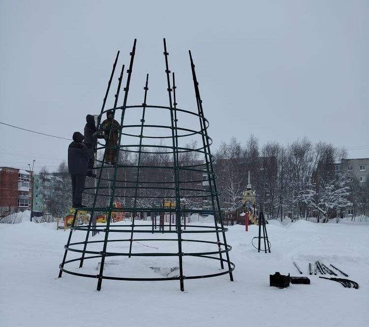 В Печоре начали устанавливать новогоднюю ёлку в микрорайоне Энергетиков
