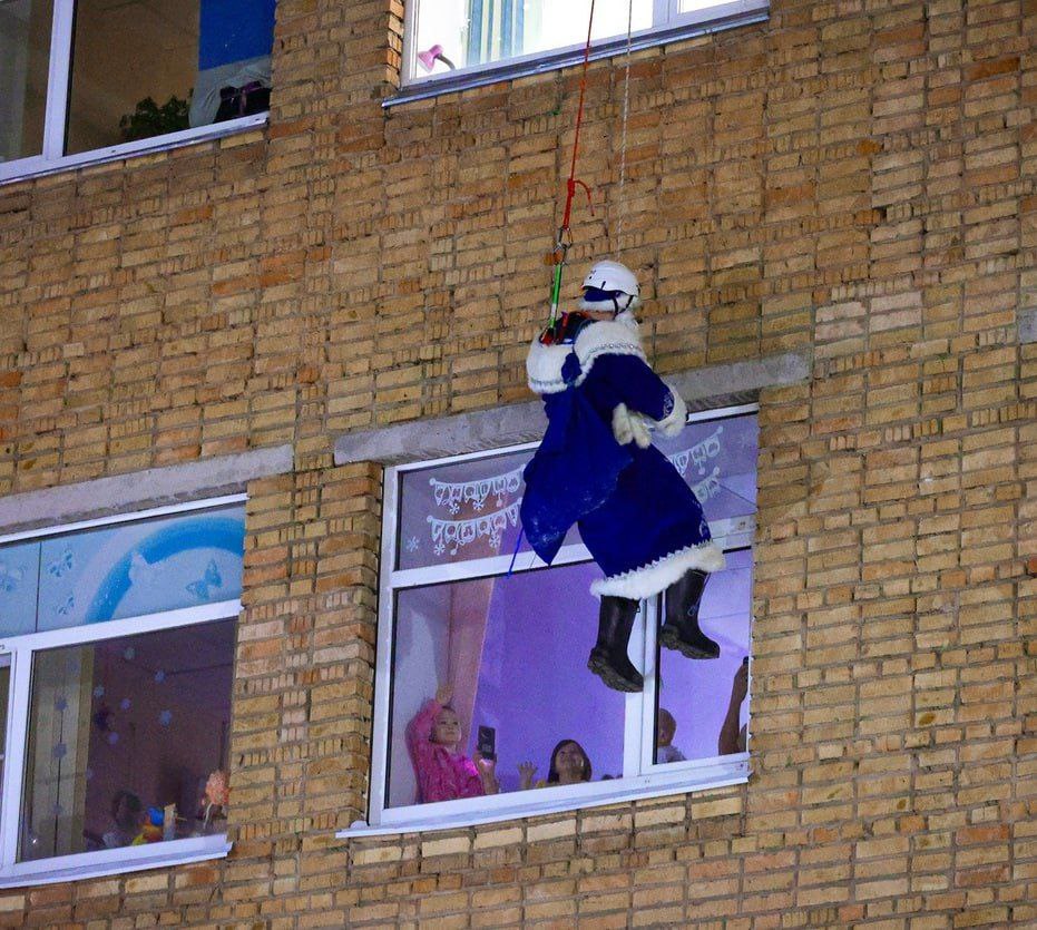 Сотрудник «СПАС-КОМИ» в костюме зимнего волшебника спустился в палаты прямо с крыши! На альпинистском снаряжении в 30 градусный мороз. Юные пациенты РДКБ получили не только незабываемые впечатления, но и сладкие новогодние подарки.