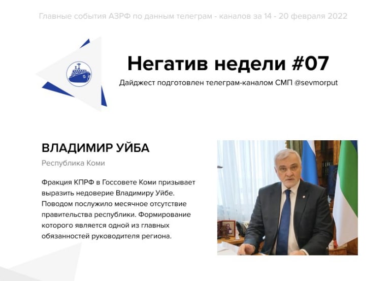 Канал СМП представляет еженедельный рейтинг «Главы АЗРФ – Негатив недели». И так случилось, что Владимир Уйба стал гостем и здесь. Владимир Викторович совсем не понимает, что он амбассадор Коми КПРФ и делает всё для их рейтинга, ну зачем он так.