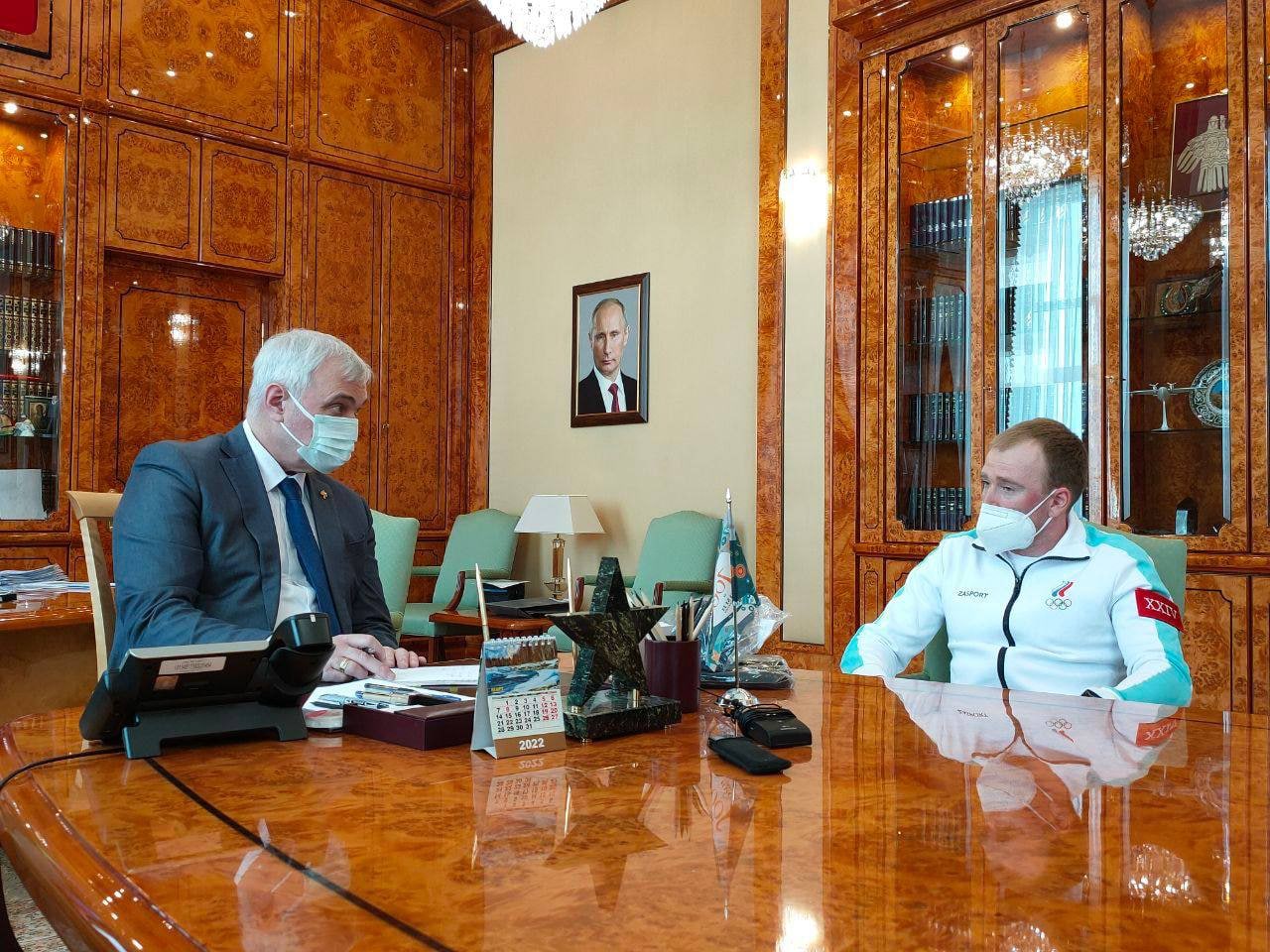 И сегодня это случилось, Владимир Уйба провёл встречу с участником Зимних Олимпийских игр в Пекине, мастером спорта России международного класса Ильёй Семиковым.