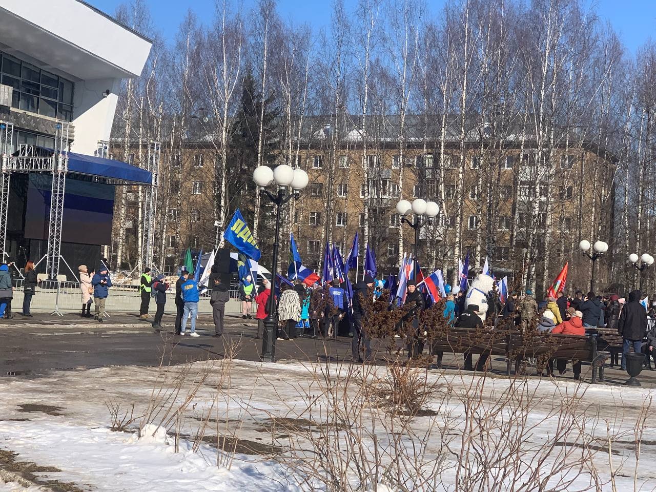 На наш взгляд это дичайший провал для действующего секретаря политсовета партии Единая Россия, даже при Сергее Усачове такого не было. Флагов России, так же как и флагов Коми не видно, одни только флаги Единой России. Не усмотрели, праздник то не единороссов, он общий для все страны.