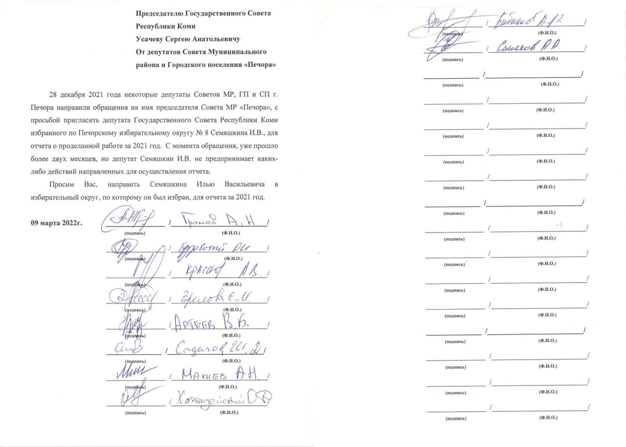 Печорские коммунисты направили письмо спикеру Госсовета с требованием заставить депутата от Печоры (и Вуктыла) Илью Семяшкина хоть один раз с момента избрания отчитаться о своей работе.