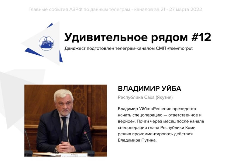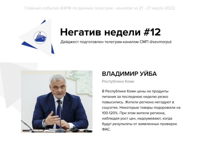 СМП представляет традиционный еженедельный рейтинг «Главы АЗРФ – Негатив недели. Неделя 12». Владимир Уйба здесь частый гость.