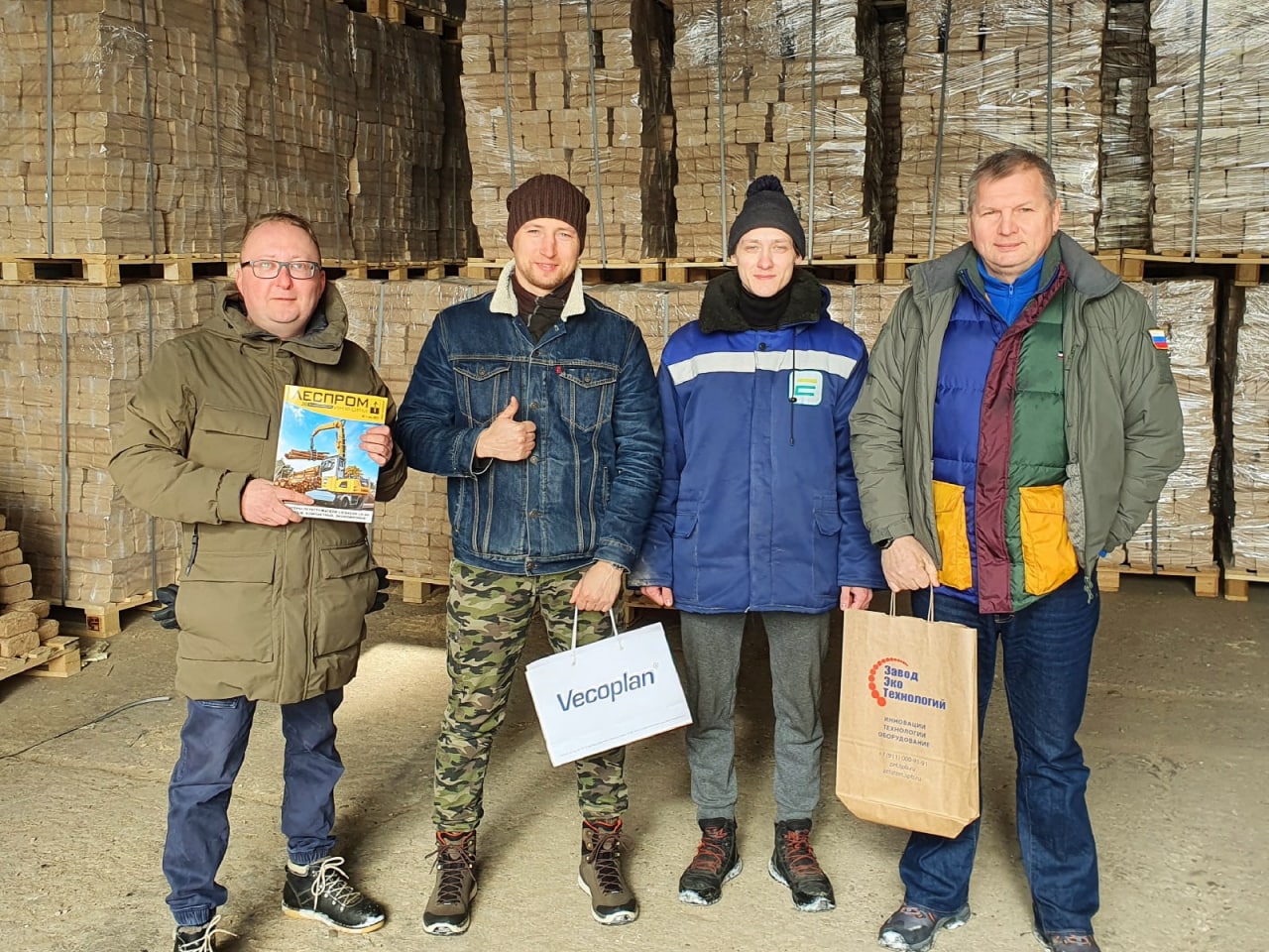К нам приехали Дмитрий Бастриков, директор "Завода Эко Технологий", широко известный в России по поставкам фирменных брикетных прессов RUF, и Вадим Кузнецов - представитель компании Vecoplan, производящей щепорубительные машины.
