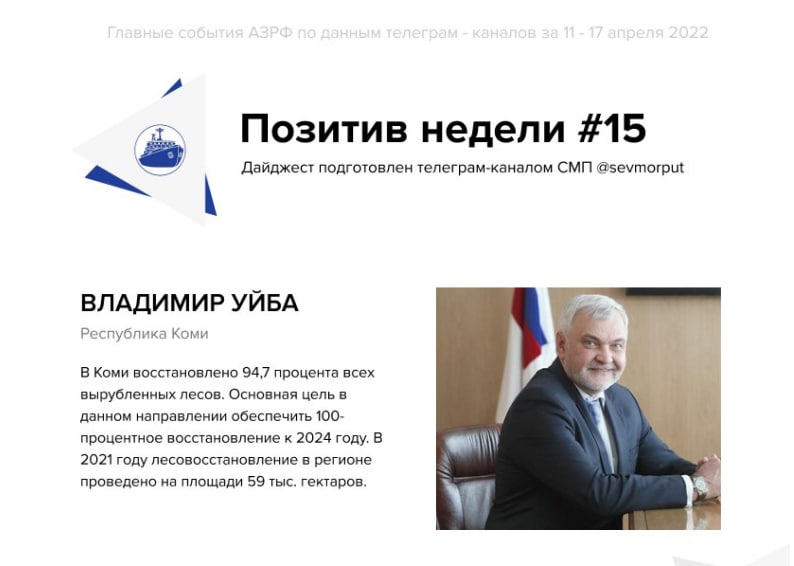 Telegram-канал СМП представляет еженедельный рейтинг «Главы АЗРФ – Позитив недели. Неделя 15».
