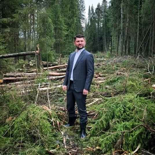 Что тут сказать, неоднозначное фото на фоне сломанных деревьев и вырубленной просеки. Скорее всего неудачный кадр. Все прекрасно понимают, что занимается компания Семенюка, но лишний раз делать на этом акцент не стоило бы. Промах его нового руководителя по связям с общественностью.