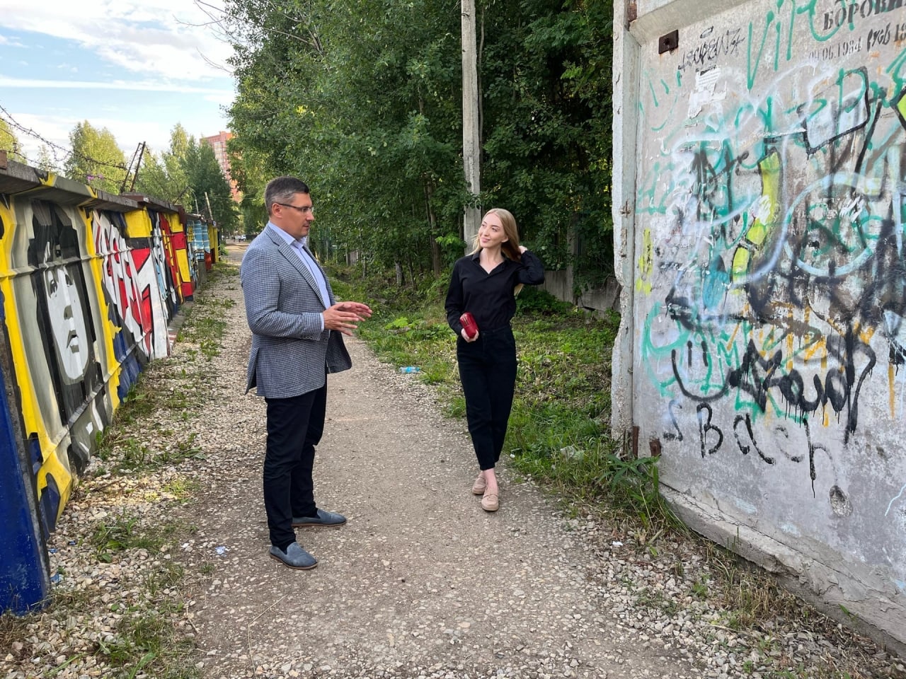 Сыктывкарская художница Агния Плотникова: Гуляла по орбите, и совершенно случайно встретилась с депутатом госсовета Сергеем Артеевым. Зацепились, слово за слово, разговорились, и увидели не красивый гараж возле стены Цоя, который портит весь внешний вид. Решили разрисовать, ведь я художница, а он депутат, пока выбираем краску. Я хочу нарисовать что-то патриотическое, что будет поднимать любовь к нашей стране.