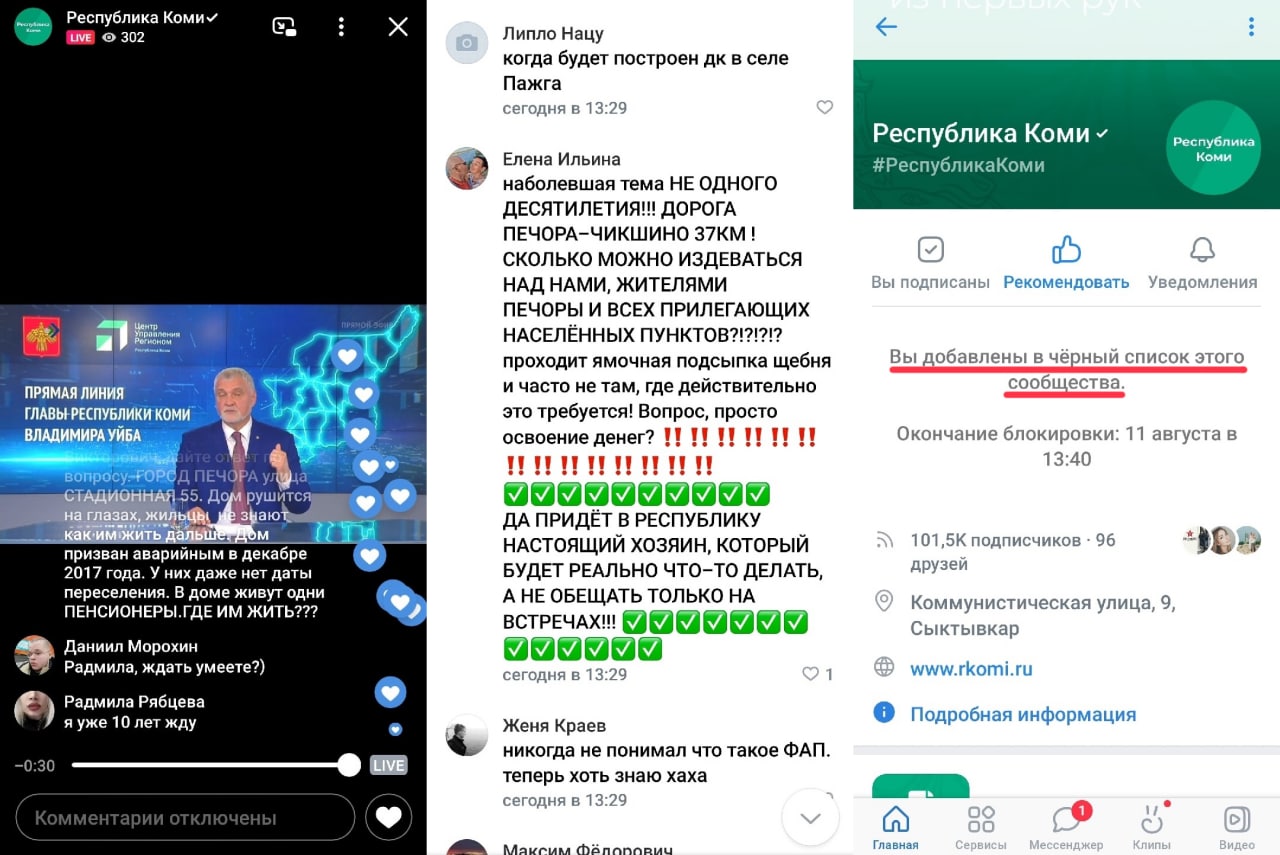 Нам пишут: Вот так проводятся прямые эфиры Владимира Уйбы с избирателями!!! С жителями Республики, которым далеко не всё равно на свой город, на свою Республику!!!! @tsurkomi позор вам!!!!