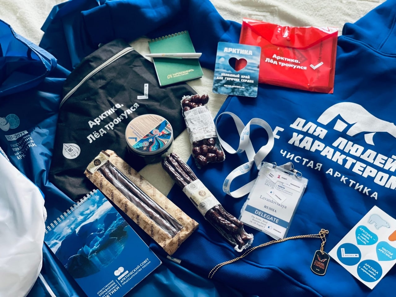 А ещё была аккредитация и экипировка. Красивый бейдж на английском. В экипировочном рюкзаке: