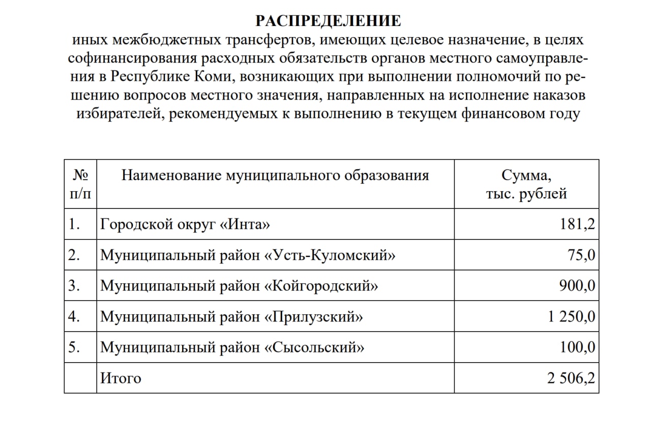 местного значения, направленных на исполнение наказов избирателей".