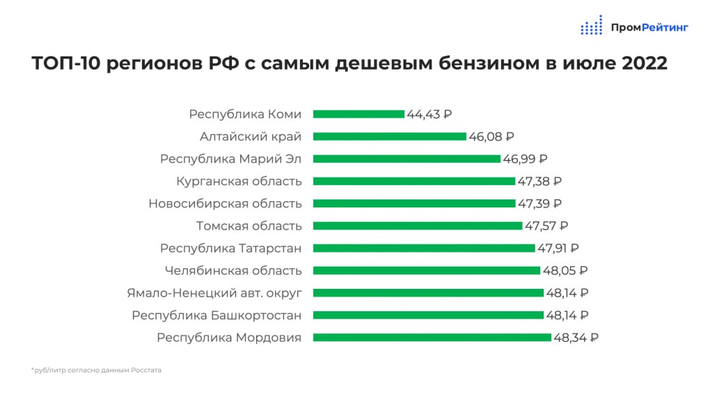 «ПромРейтинг» приводит данные по изменению цен, выделяя лидеров среди регионов, где на момент исследования зафиксированы самые высокие и низкие цены на топливо.