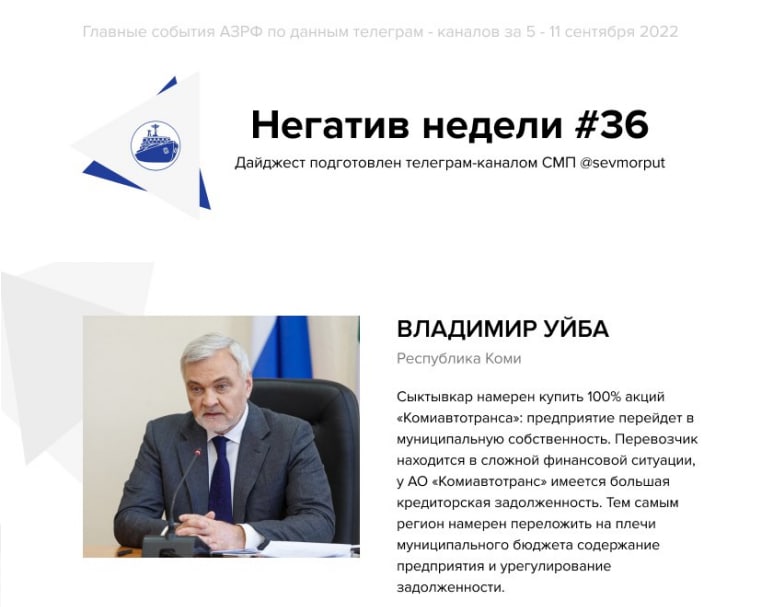 СМП представляет еженедельный рейтинг «Главы АЗРФ – Негатив недели. Неделя 36».