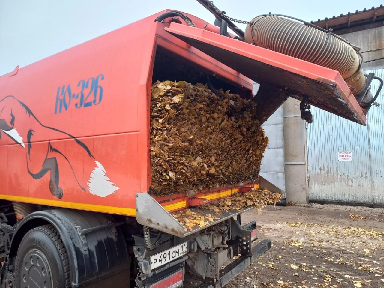 Сыктывкарские коммунальщики хвастаются техникой. У них есть пылесос, который всасывает листву, трамбует внутри себя и потом легко от неё избавляется за чертой города.