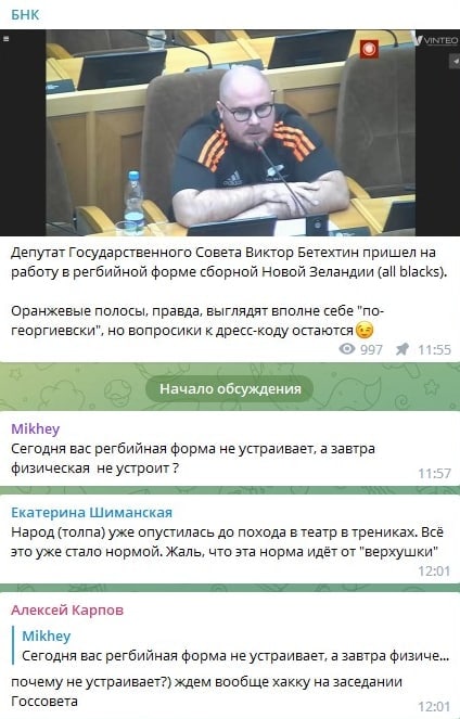 В чате наших коллег по цеху обсуждают внешний вид вроде как ещё депутата Государственного Совета Республики Коми Виктора Бетехтина.