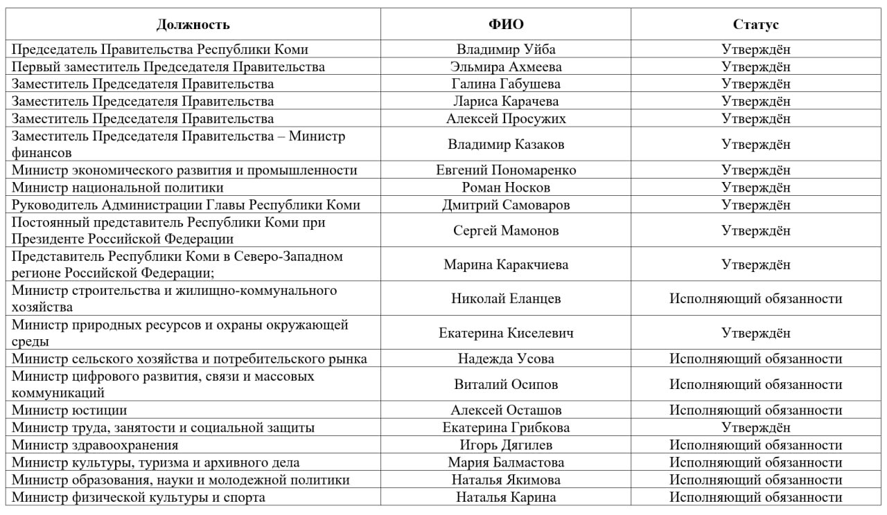 В новый год наш регион вошёл с восьмью исполняющими обязанности министров в Правительстве Коми. Только в апреле Владимир Уйба утвердил окончательный состав кабмина Коми, но даже этот список не протянул и года. За прошедший период Правительство региона претерпело изменения, учитывая, что мы увидели уход двух министров строительства.