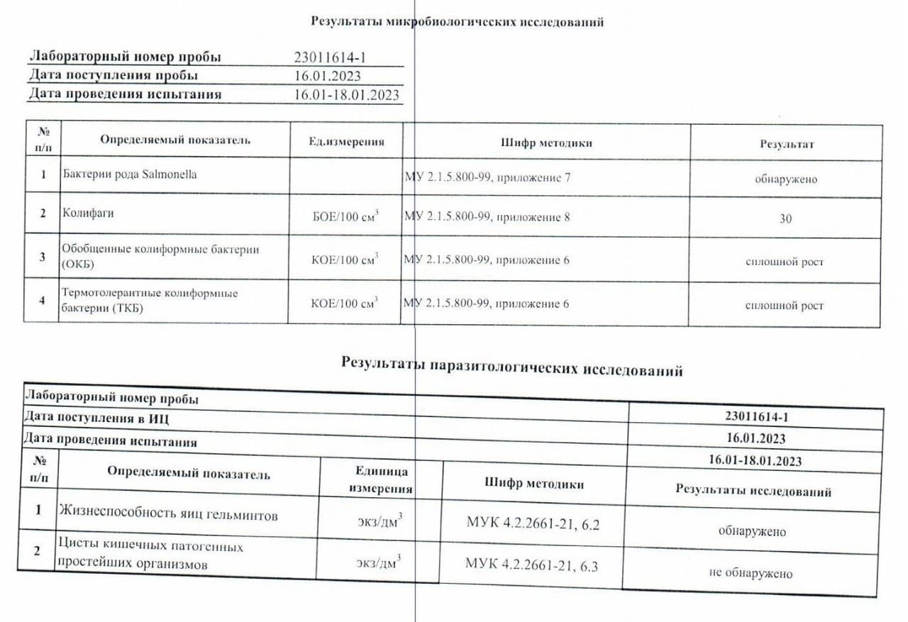 По результатам анализа в пробах, взятых 14 января, обнаружено: