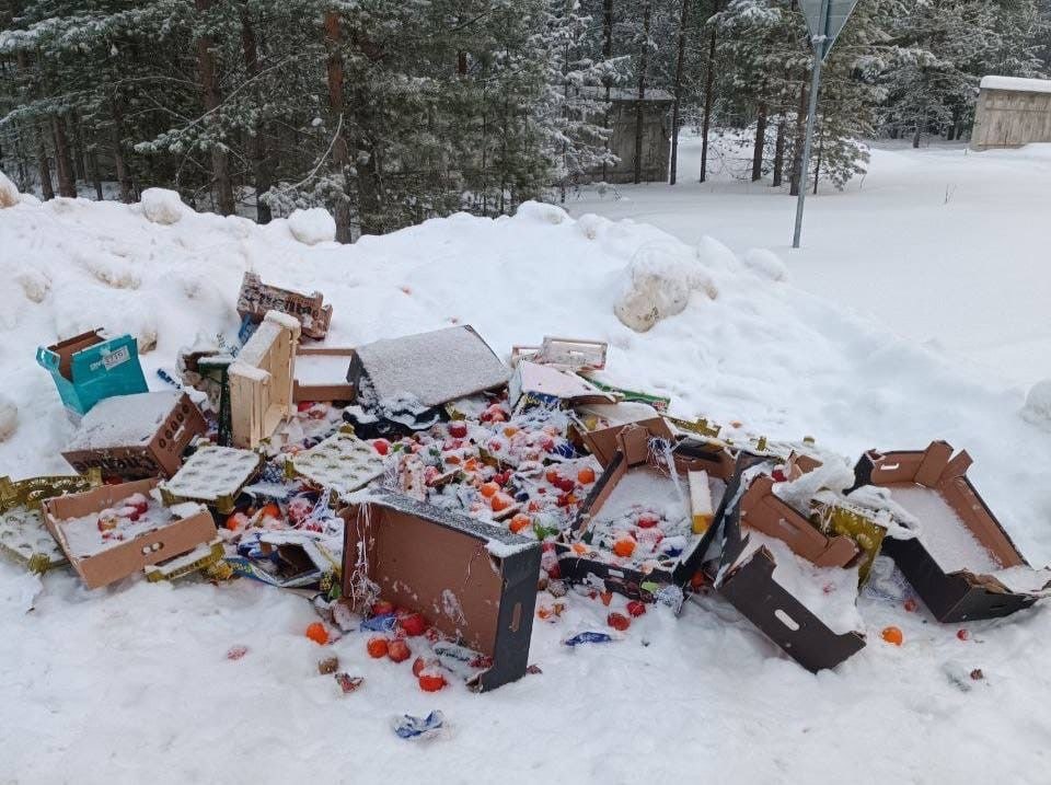 У посёлка Язель Сыктывдинского района неизвестный предприниматель выбросил нереализованные продукты у дороги.