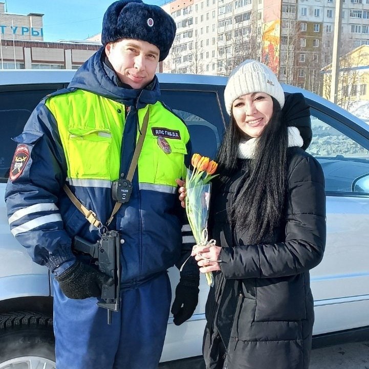 Интересно отпраздновали в Усинске гибддешники женский праздник. На дорогу вышел сотрудник в форме, но со стволом и вручал девушкам цветы. А что было бы, если бы они отказались принимать тюльпаны?