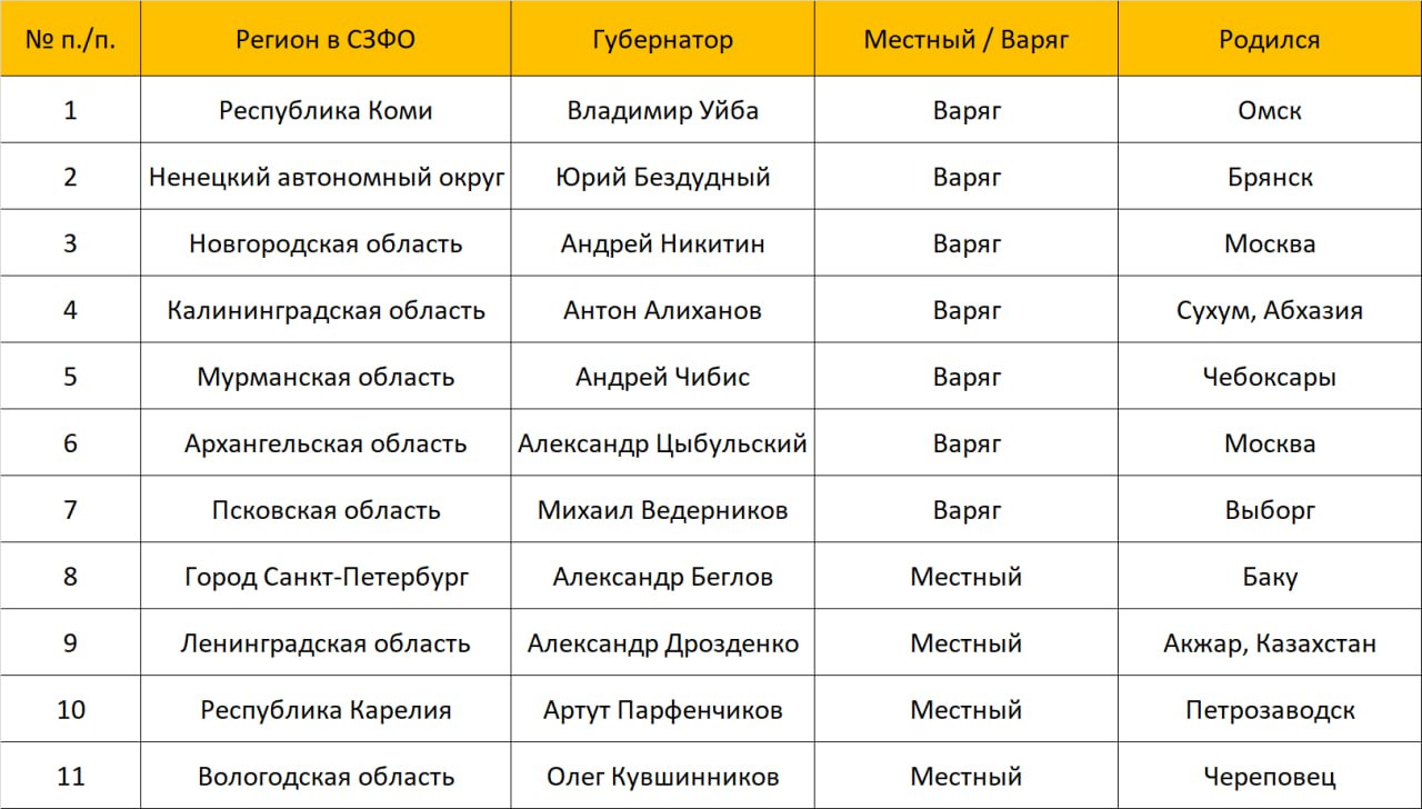 В Северо-Западном федеральном округе работают в должности губернатора преимущественно варяги. В нашем понимании это люди, приехавшие в регион извне, чтобы заниматься руководством и управлением.