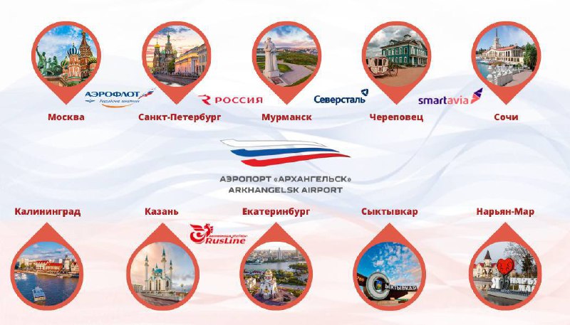 Архангельский аэропорт сделал интересную инфографику, где показал куда можно будет улететь из их воздушной гавани. Кстати, один из рейсов летит к нам в столицу Коми - Сыктывкар.