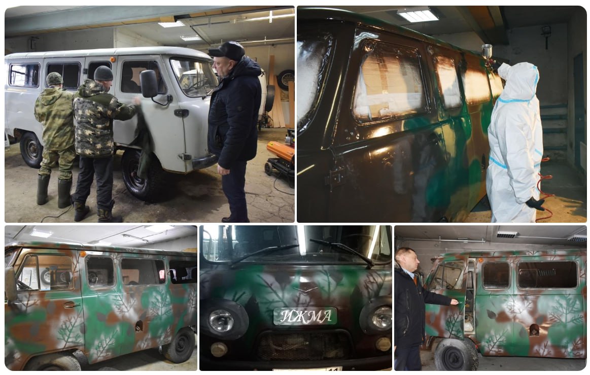На собранные ижемцами средства для отправки в зону СВО куплен подержанный автомобиль - УАЗ-буханка. Машина отремонтирована, нанесён камуфляж.