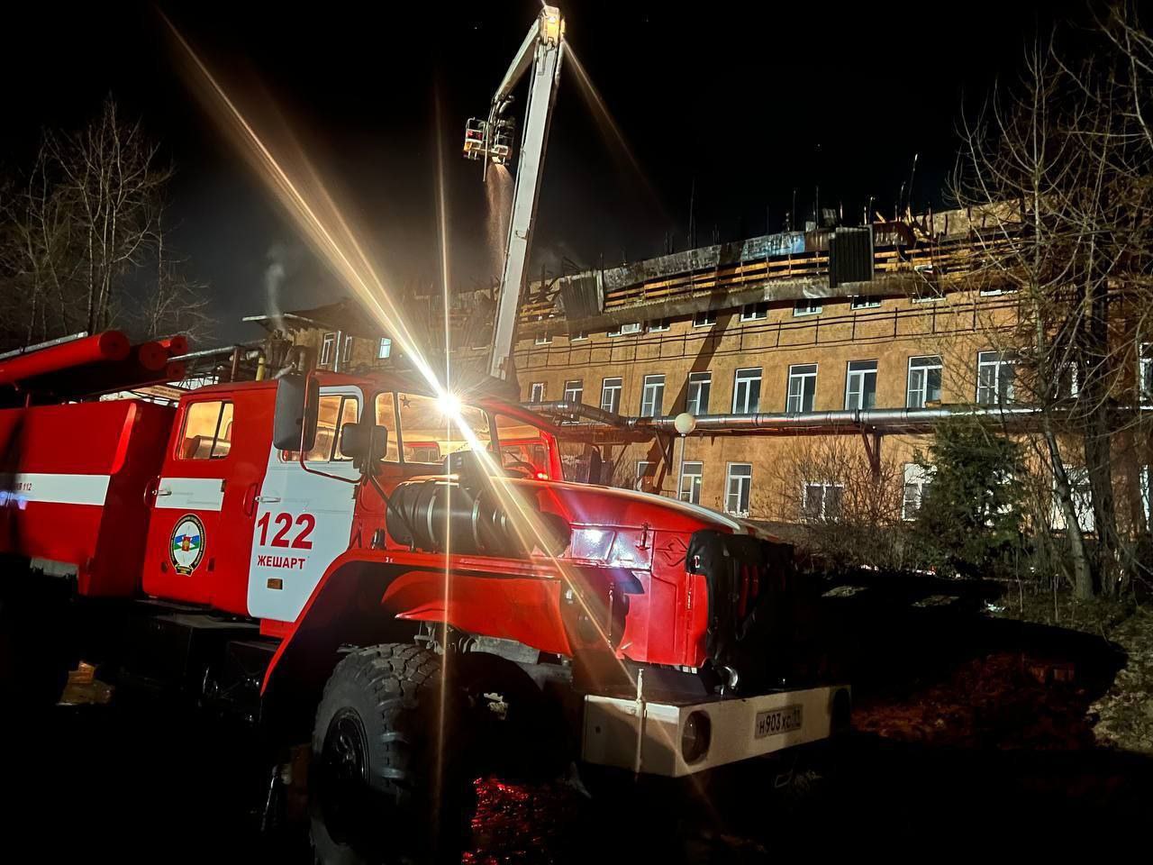 По информации МЧС, в ночь на 18 апреля, в 23:19, поступило сообщение о возгорании кровли здания на территории ООО «Жешартский фанерный завод» по улице Гагарина в поселке Жешарт. Работники отмечают, что услышали хлопки, потом почувствовали запах и эвакуировались.