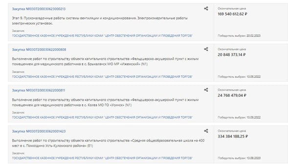 В целом же, ПСК «Петробалт» становится одним из основных подрядчиков в Коми. Общая сумма выигранных закупок за последние годы составляет 1,5 млрд рублей. Ранее, в 2017-2018 гг данная организация была одним из основных застройщиков ФМБА РФ.