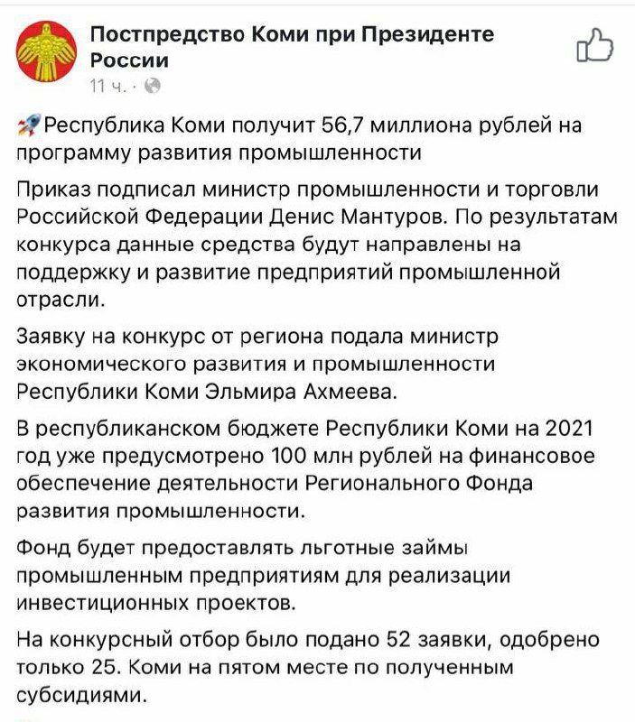 Ладно опечатка в последнем абзаце "Коми на пятом месте по полученным субсидиями." Это типа "Коми вчера была отхерачина пятью субсидиями!))".