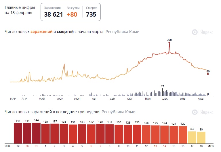 По состоянию на 17 февраля в Коми поступило 26 042 дозы «ГАМ-КОВИД-ВАК», а также 500 доз вакцины «ЭпиВакКорона». Прививку можно сделать в 21 медицинской организации (там есть необходимое морозильное оборудование, термоконтейнеры, термоиндикаторы). К проведению прививочной кампании подготовлены ещё 2 медорганизации - вакцину они уже получили. Организованы 109 прививочных бригад.