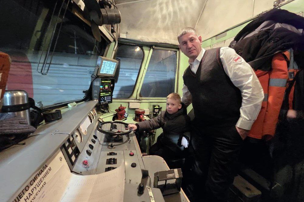 Мечта восьмилетнего печорца сбылась: школьник прокатился в кабине машиниста поезда
