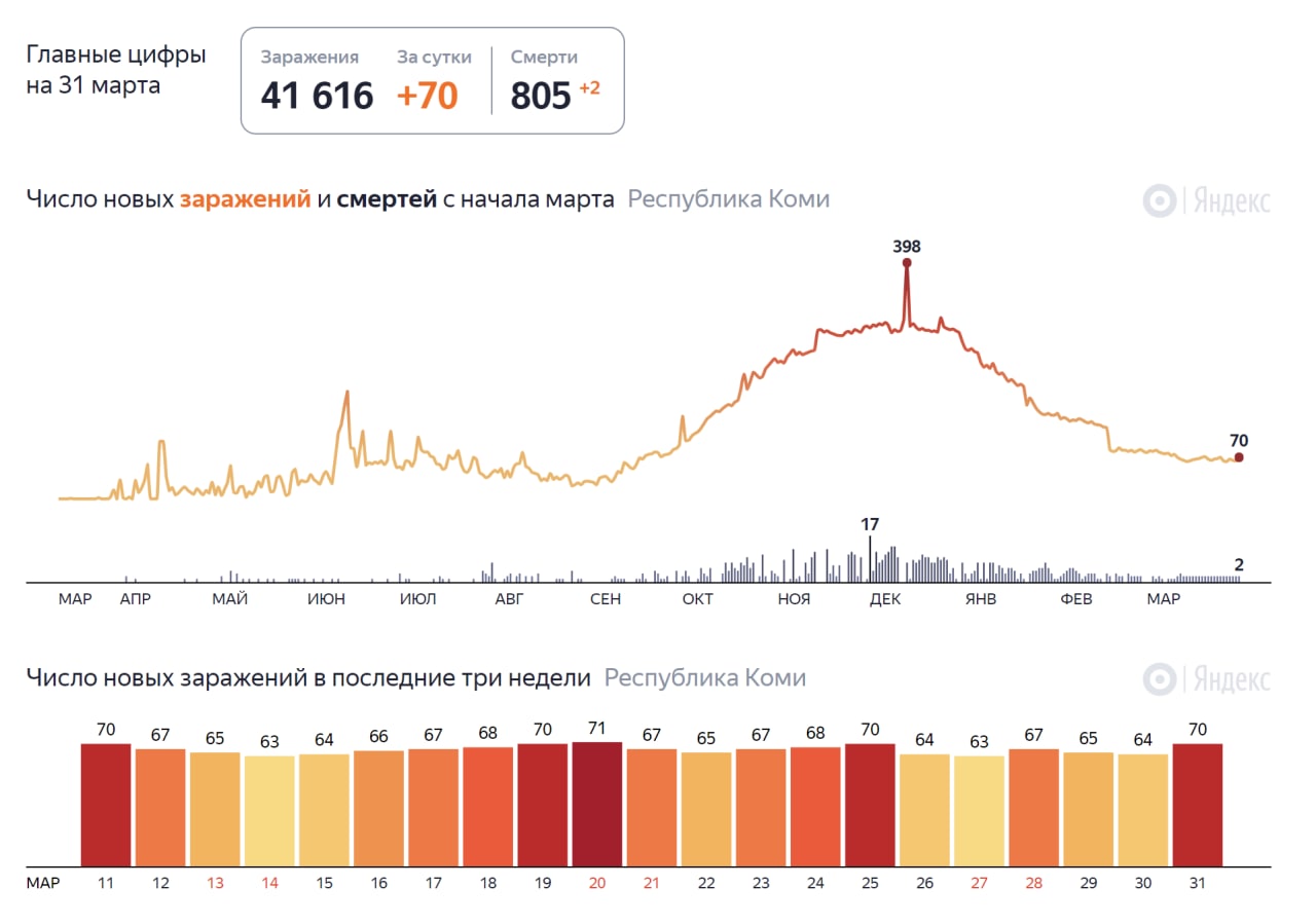 Вчера Владимир Уйба встретился с руководителем отделения Посольства Республики Беларусь в России в Санкт–Петербурге Игорем Заломаем. На встрече обсудили вопросы развития сотрудничества и взаимодействия Республики Коми и Республики Беларусь. Однако эти планы не понравились коронавирусу и он решил наступать, сегодняшние показатели по заболевшим вновь достигли отметки в 70 человек. А это значит, что губернатор что-то делает не так. Он предложил белорусам делать в Коми мебель и продавать её местным жителям, в общем так себе способ оздоровить регион.