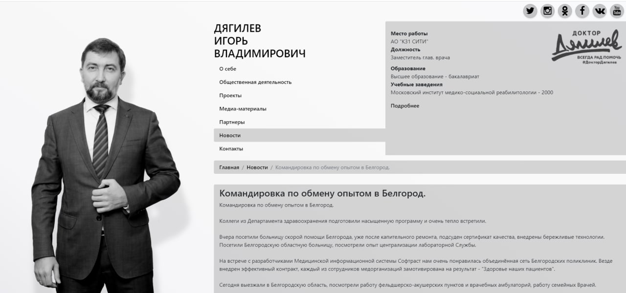 👨🏻⚕️ Есть свой сайт, красивый такой, с лейблами – «Доктор Дягилев, всегда готов помочь!» http://dyagilev.life/news/2021/04/a-trip-to-yaroslavl/