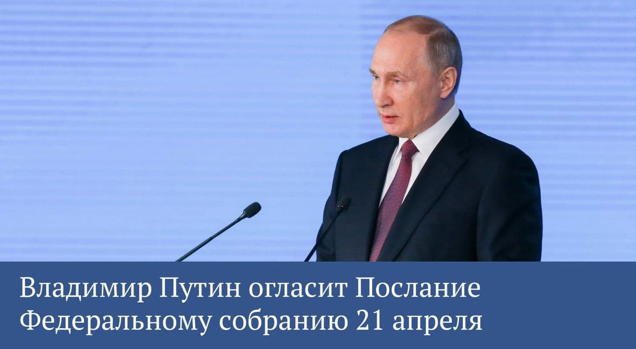 🇷🇺Президент РФ Владимир Путин огласит послание Федеральному собранию 21 апреля 2021 года.