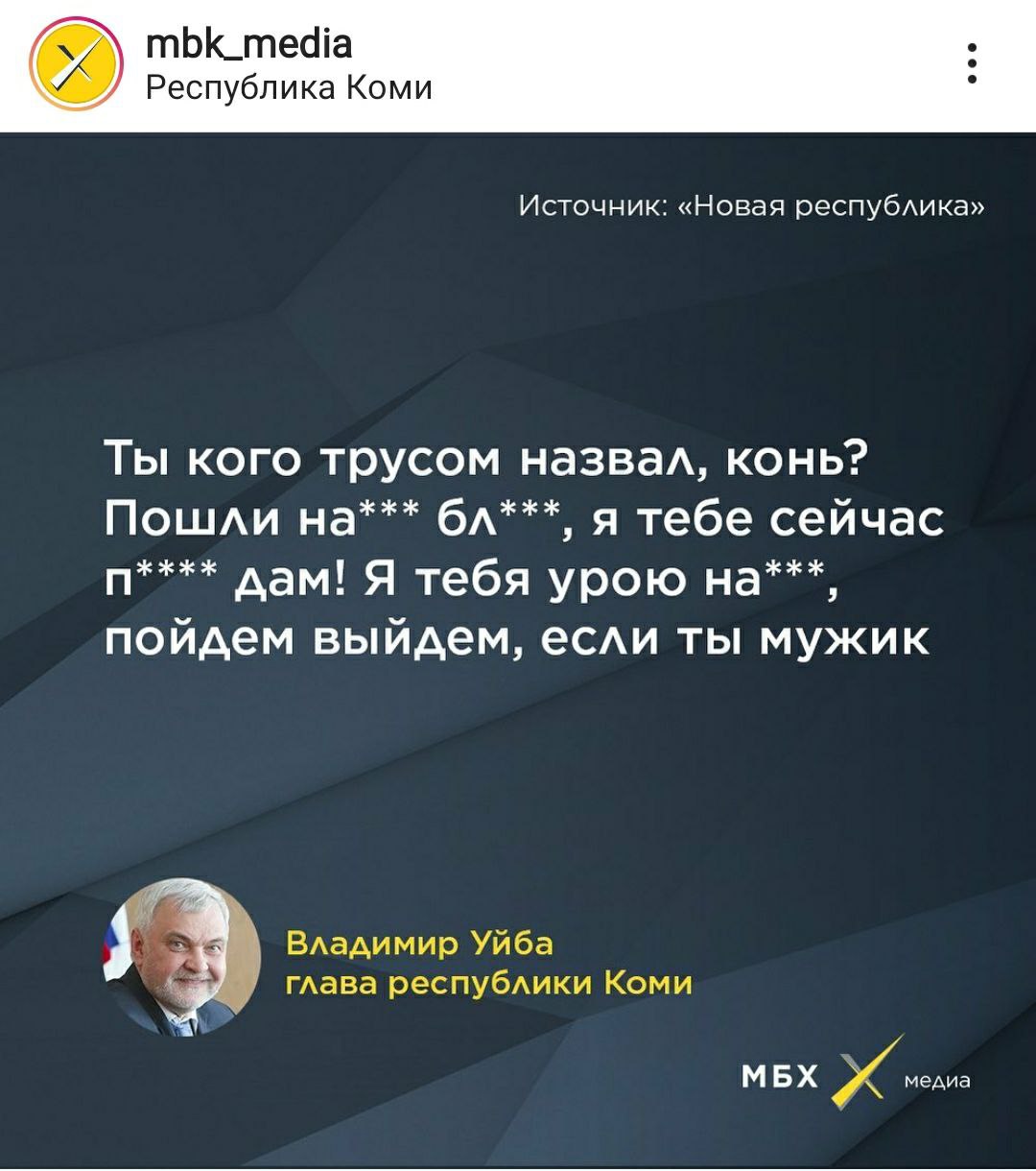 Когда Владимир Викторович стрессанул, по словам депутата Госсовета Олега Михайлова, он не подозревал какие это может иметь последствия. Мы посмотрели ведущие издания и диалог Михайлова и Уйбы уже отметился на Znak, 5 канал, Лентач, Эхо Москвы, Известия и многих других. К сожалению диалог двух господ вышел из плоскости междоусобицы, теперь это тема номер один в Коми и точно ТОП-10 в России.