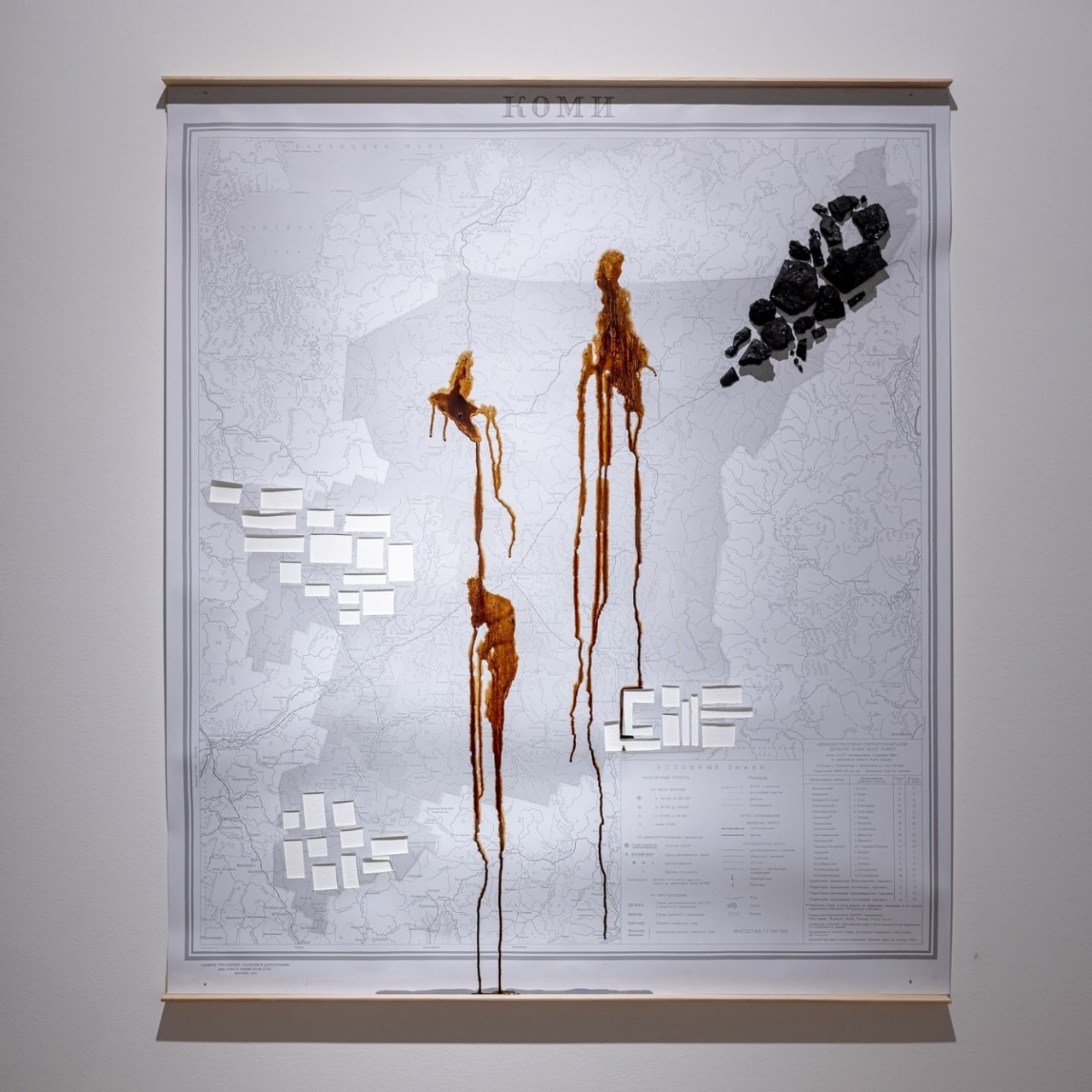 «Когда мы читаем, что произошел разлив или взрыв на угольной шахте, нам сложно представить объемы, масштабы, а иногда даже место аварии,» – альтернативная карта Димы позволяет взглянуть на экологические проблемы сразу в масштабе всего региона. Интересно то, что нефтеразливы проиллюстрированные на карте настоящей нефтью, с каждым днем продвигаются все дальше и дальше по республике...