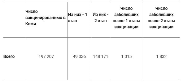 По данным на 29 июня, в Коми было 75 человек, которые заболели COVID-19 после вакцинации. Как пояснили в Минздраве региона, причиной заболевания было то, что вакцинация совпала с инкубационным периодом.